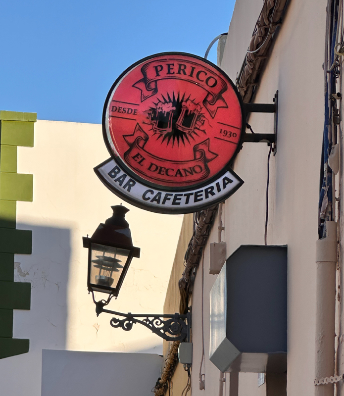 <p>Rótulo comercial del <em>Bar Perico el Decano</em>, testigo de la vida social, laboral y cotidiana del municipio durante décadas y regentado desde principios de los años noventa por <strong>José Lorenzo Arbelo Ramos</strong>, conocido popularmente como <em>Pepe El Tortilla</em>. Como consta en su rotulación, y aunque no existe documentación sobre la fecha exacta, el testimonio de Pepe sitúa el origen del negocio en torno a 1930, lo cual significaría que se trata del bar más antiguo del municipio, funcionando ininterrumpidamente durante casi un siglo. Fue inaugurado por su abuela, <strong>Rosario de la Cruz López</strong>, que lo puso en marcha junto a una pequeña tienda "de aceite y vinagre" que atendía de manera simultánea. También llegó a regentar una tienda de lanas conocida como <em>Lanas Ardilla</em> (marca de las lanas que vendía) e incluso una dulcería.</p>