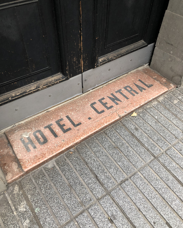 <p>Pieza de terrazo integrada en el pavimento de acceso al antiguo Hotel Central, con el nombre del establecimiento inscrito mediante letras incrustadas. Constituye el único elemento material visible que recuerda hoy la existencia de este emblemático hotel situado en el entorno del Parque de Santa Catalina, uno de los núcleos sociales y turísticos más relevantes de Las Palmas de Gran Canaria durante las primeras décadas del siglo XX.</p>