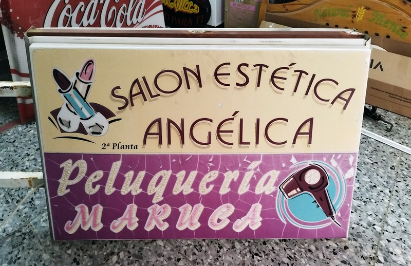 <p>R&oacute;tulo perteneciente a la hist&oacute;rica <em>Peluquer&iacute;a Maruca</em>, establecimiento familiar activo durante m&aacute;s de cuatro d&eacute;cadas en El Doctoral. Presenta formato perpendicular a fachada, pensado para su visibilidad desde la calle.&nbsp;Su composici&oacute;n se organiza en dos partes diferenciadas que reflejan la convivencia f&iacute;sica de ambos negocios.&nbsp;El dise&ntilde;o incorpora las ilustraciones caracter&iacute;sticas del lenguaje visual utilizado por peluquer&iacute;as y salones de belleza en las d&eacute;cadas finales del siglo XX.</p>