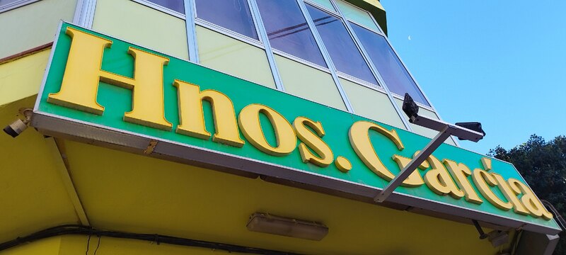 <p>Parte del r&oacute;tulo de gran formato que, a lo largo de la fachada principal del edificio, identific&oacute; el establecimiento <em>Hermanos Garc&iacute;a</em>, hist&oacute;rico comercio de muebles y electrodom&eacute;sticos, activo durante m&aacute;s de medio siglo.</p>