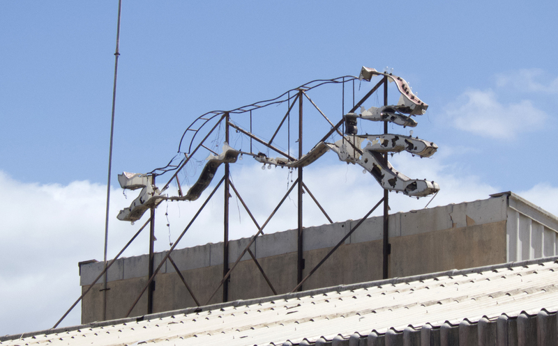 <p data-end="452" data-start="185">Estructura metálica con restos de iluminación que dibuja la silueta de un galgo en carrera, en estado ruinoso sobre la cubierta de un edificio abandonado. El elemento corresponde al antiguo luminoso instalado en la fachada principal del <em>Canódromo Gran Canaria</em>, popularmente conocido como <em>Canódromo Playa del Inglés</em>, construido en el Barranco de El Veril, en el entorno de Bellavista, durante el auge turístico de la segunda mitad del siglo XX.</p>
