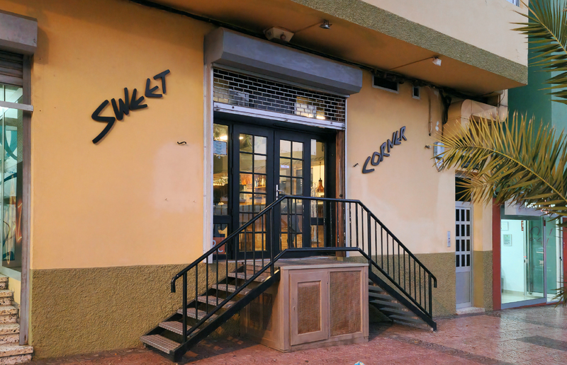 <p data-end="356" data-start="114">R&oacute;tulo aplicado sobre fachada correspondiente al hist&oacute;rico establecimiento <em>Sweet Corner</em>, que&nbsp;identifica uno de los locales m&aacute;s reconocibles del tejido comercial y hostelero de Vecindario desde finales de los a&ntilde;os ochenta. El establecimiento se consolid&oacute; progresivamente como punto de encuentro para varias generaciones de vecinos y visitantes, manteniendo actividad ininterrumpida durante cuatro d&eacute;cadas.</p> <p data-end="1175" data-start="761">El dise&ntilde;o del r&oacute;tulo responde a una est&eacute;tica informal y din&aacute;mica, acorde con el car&aacute;cter h&iacute;brido del local, que combin&oacute; funciones de pub, restaurante y espacio de encuentro musical. La disposici&oacute;n fragmentada del nombre, flanqueando el acceso principal mediante letras corp&oacute;reas fijadas directamente al paramento, refuerza la simetr&iacute;a de la fachada y convierte la propia entrada en eje compositivo.</p>